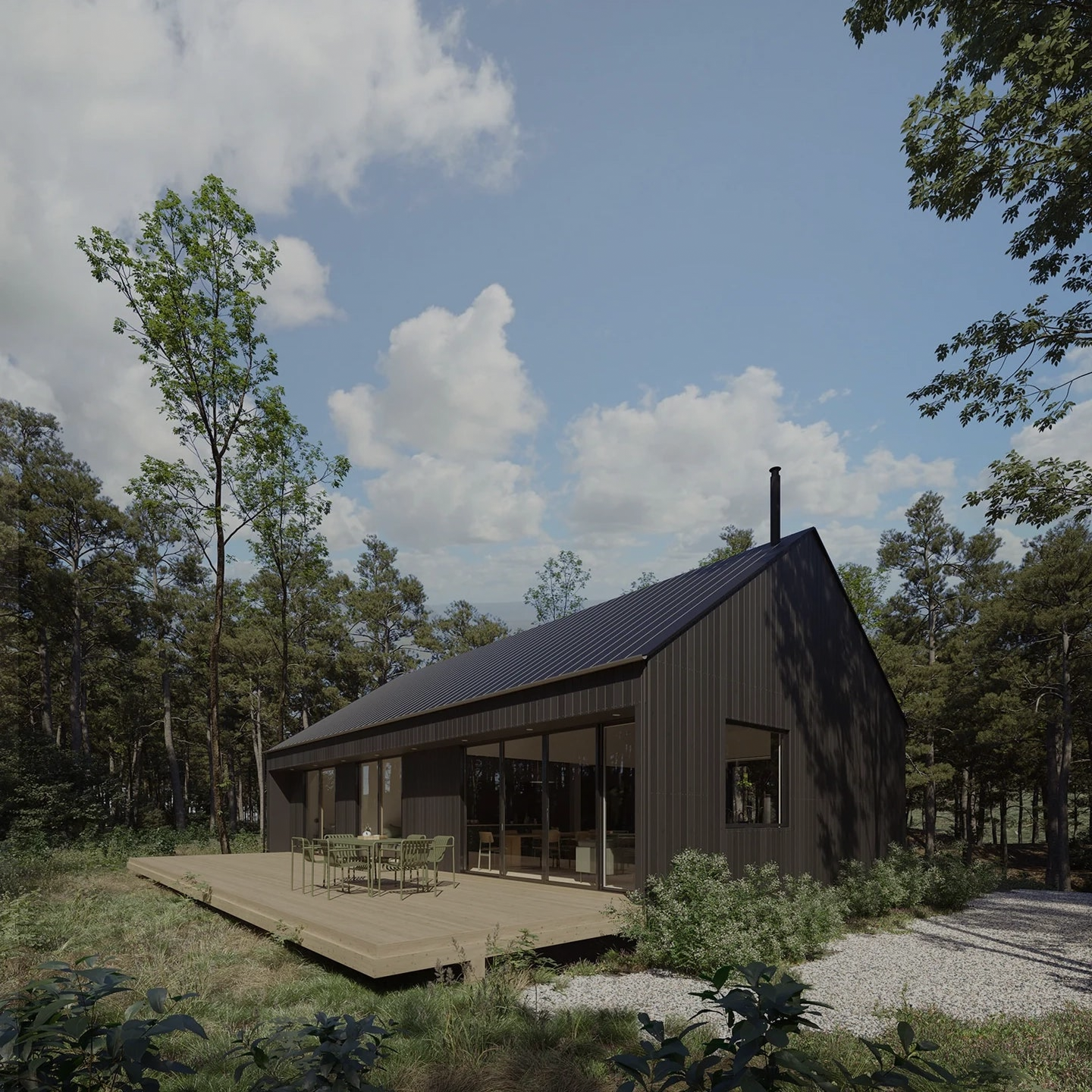 A spacious modern barnhouse that balances simplicity and presence, delivered as a fully engineered prefab kit.