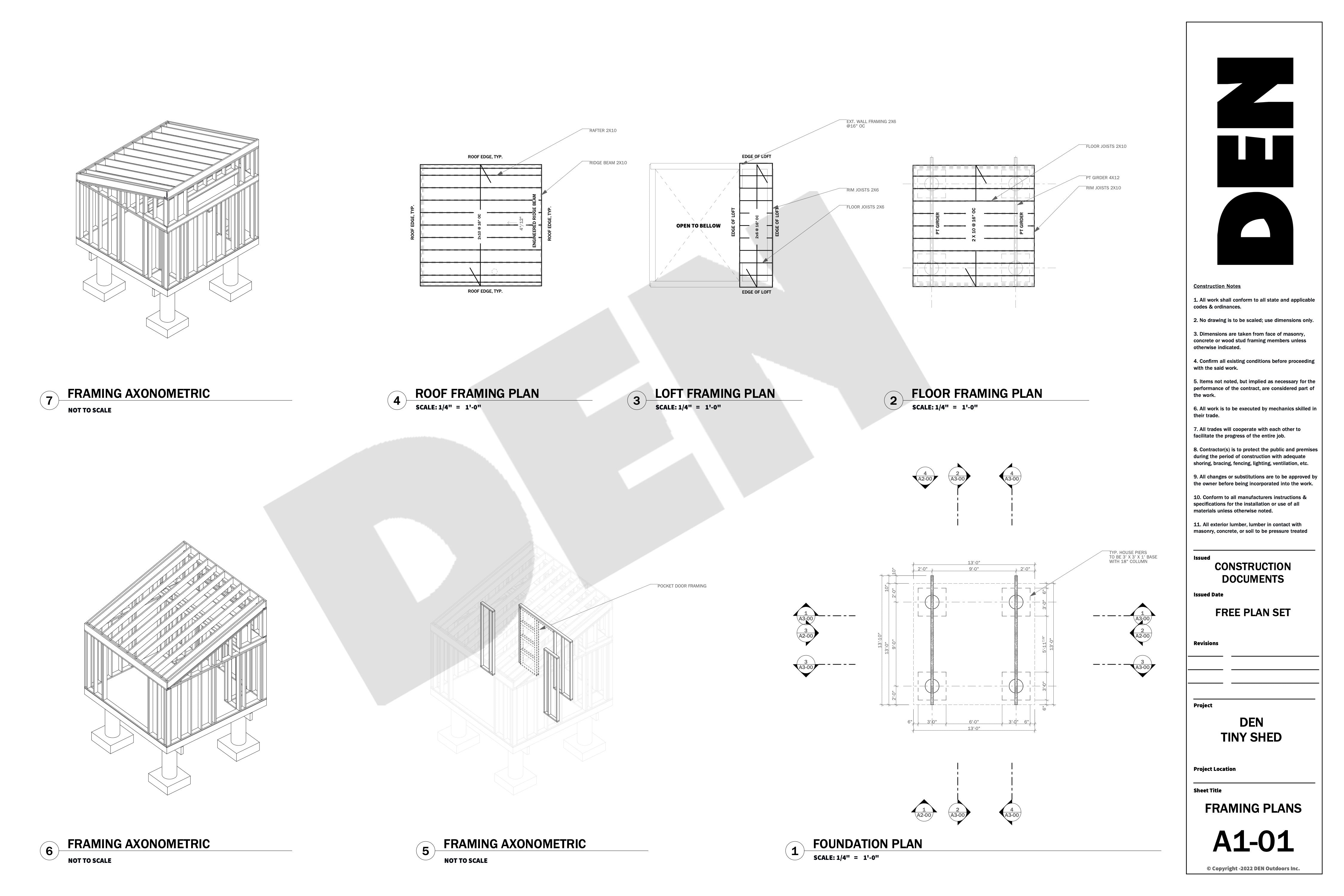 Local engineering is required to generate a stamped foundation design, which will account for soil testing results and site-specific conditions. DEN provides you with a complete engineered plan set from the foundation up, ready to support your project through permitting and construction.
