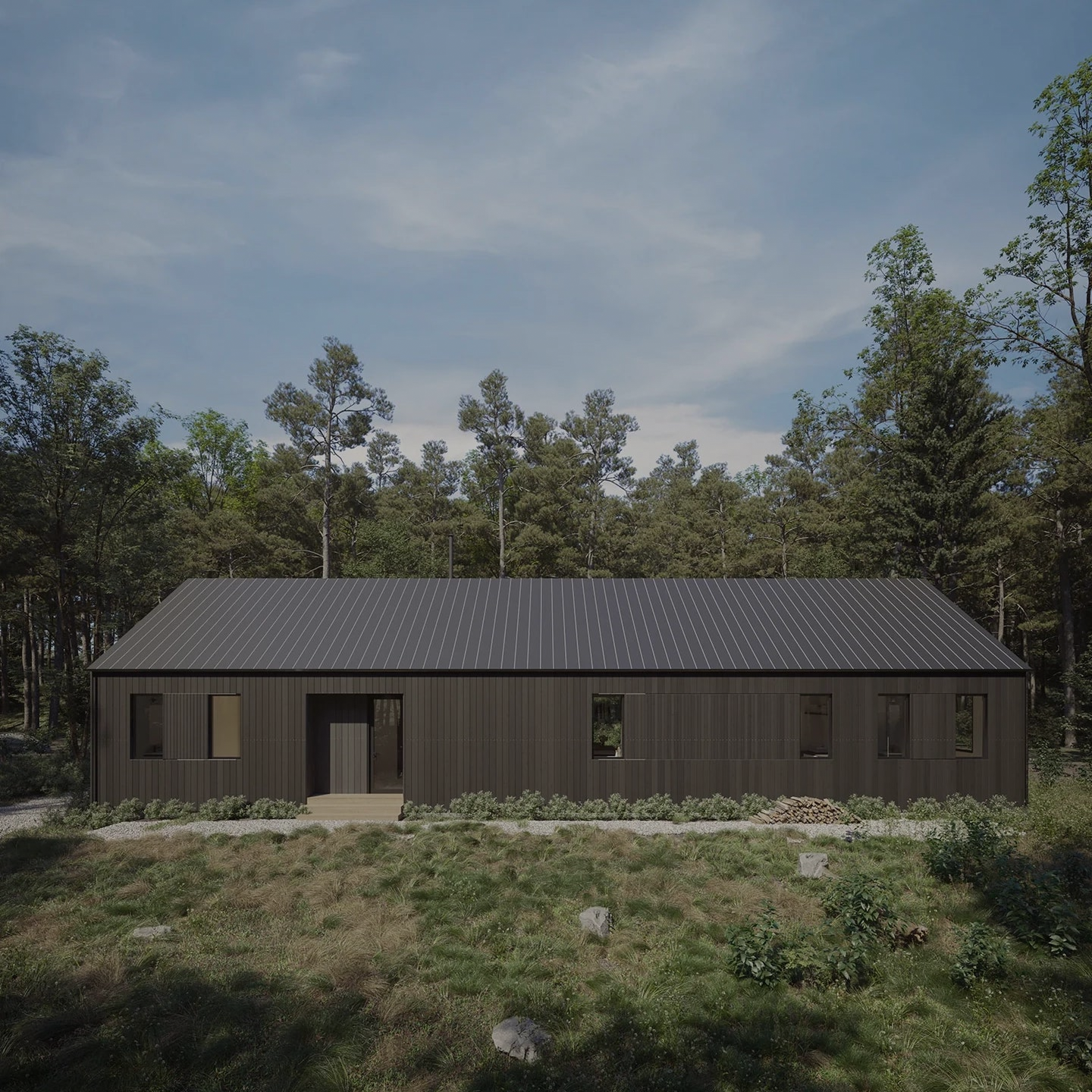 A full window and door package harmonized to match the exact geometry of your chosen DEN design, including any large-format glass walls or signature openings. Delivered ready for installation as part of the prefab kit.